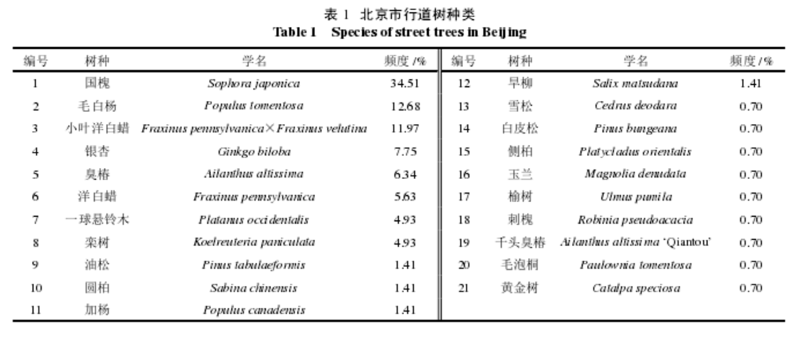 Study on structure of street trees in central districts of Beijing